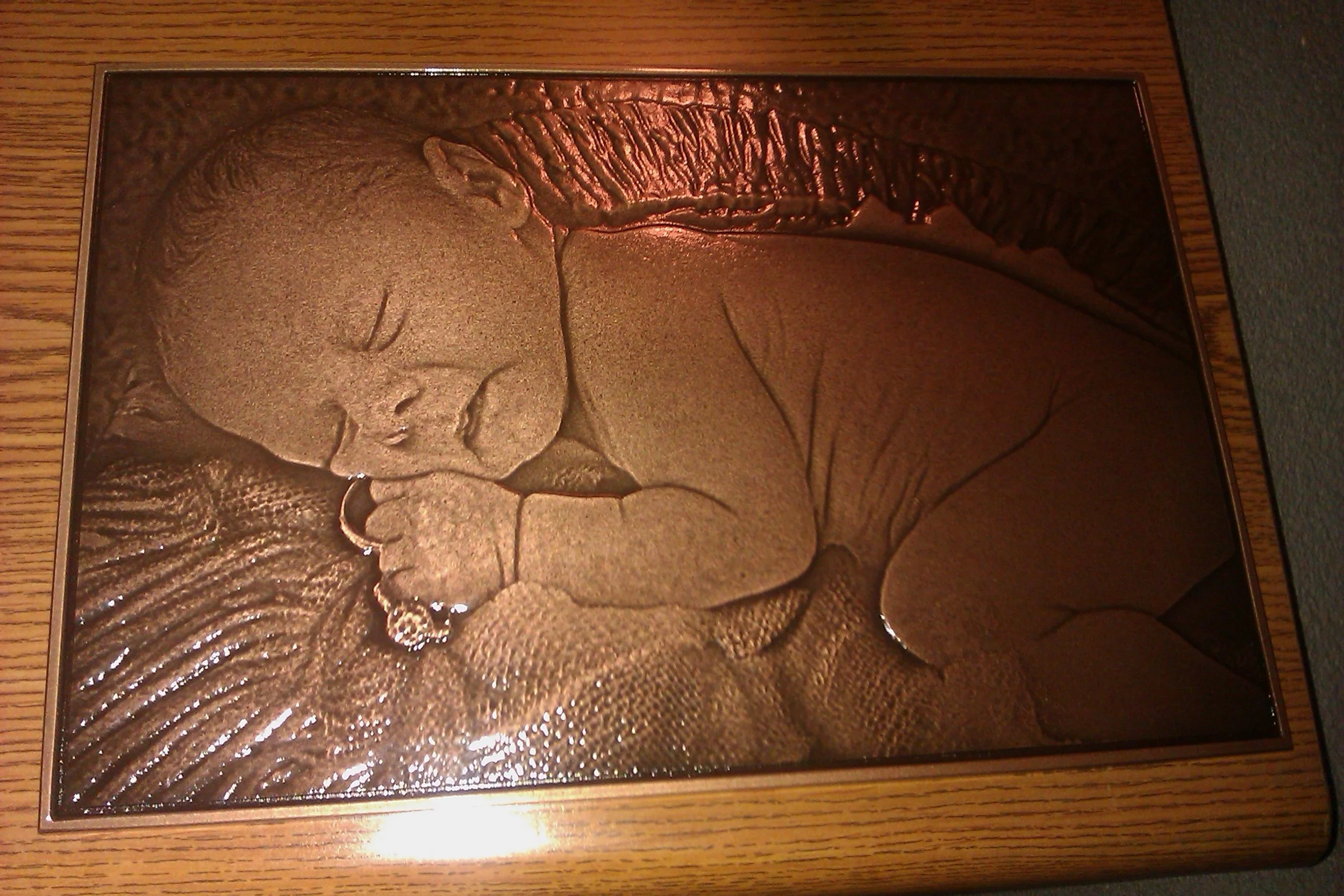 You supply the high-resolution photos, and we do the rest. Our graphic artists can create collages or use a single photo along with text to tell the story behind your project. This process gives slightly less relief than sculpted plaques but much more relief than standard flat relief or etched metal plates.