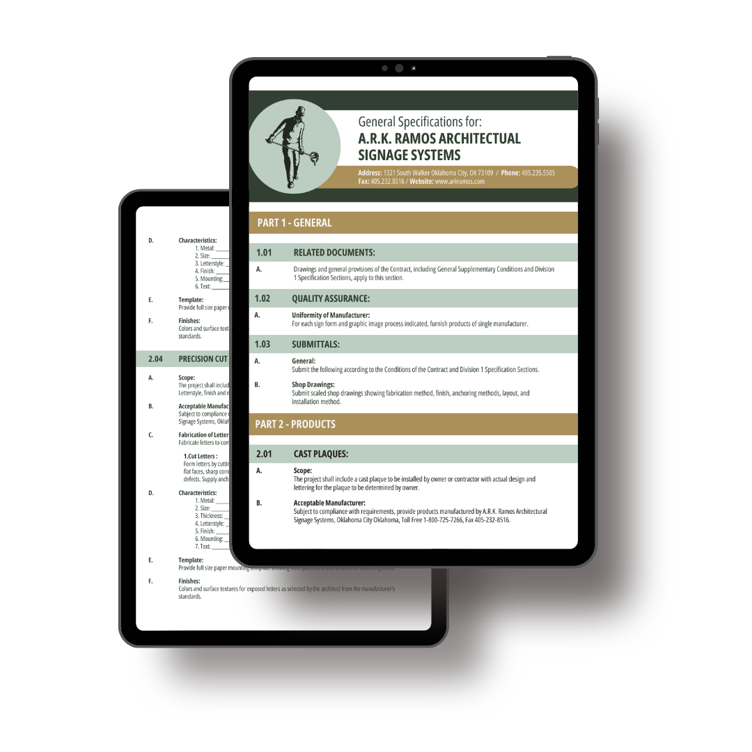 Architects, we understand that specifying the right products for your projects can be time-consuming. That's why we’ve created a comprehensive cheat sheet to help you efficiently fill out the specifications for plaques and dimensional letters in Section 10!